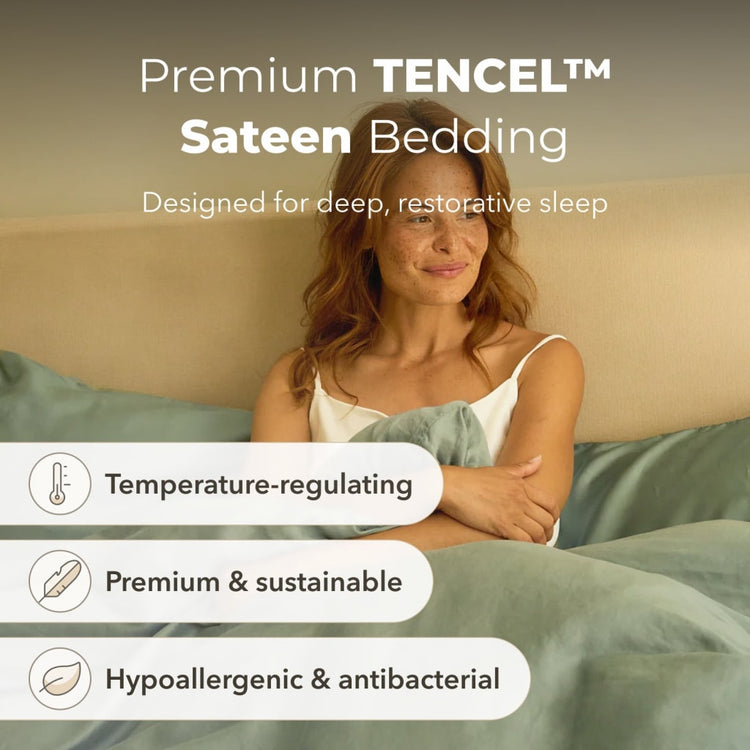 Experience nightly luxury with our 100% Tencel Lyocell sateen duvet cover. Its breathable, temperature-regulating weave keeps you cool in summer and cozy in winter.