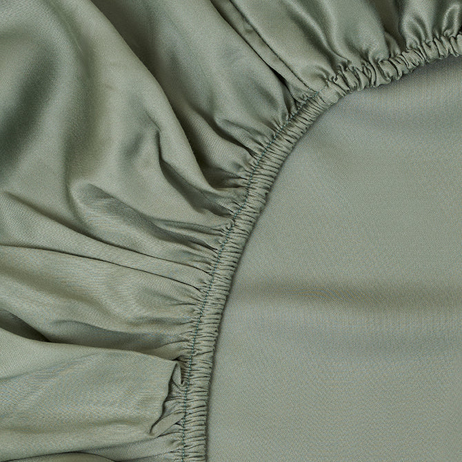 100% Tencel Lyocell sateen fabric with a 300-thread-count provides a luxurious silky-soft feel and subtle sheen. Breathable lightweight weave regulates temperature year-round, while the hypoallergenic surface resists dust mites and allergens. A tuck-in flap secures the cover under your mattress to prevent shifting.